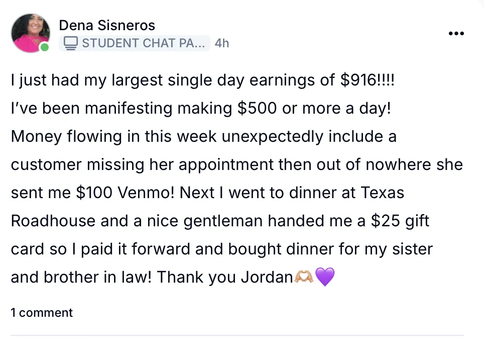 Hi, I’m Jordan Cheyenne! As a manifestation coach, content creator, and business strategist, I’ve spent years mastering the law of attraction and teaching thousands how to unlock their potential to create the life they deserve. After using manifestation to turn my own life around—building a successful business, manifesting over $60K in just 30 days, and overcoming deep-rooted limiting beliefs—I made it my mission to help others do the same.