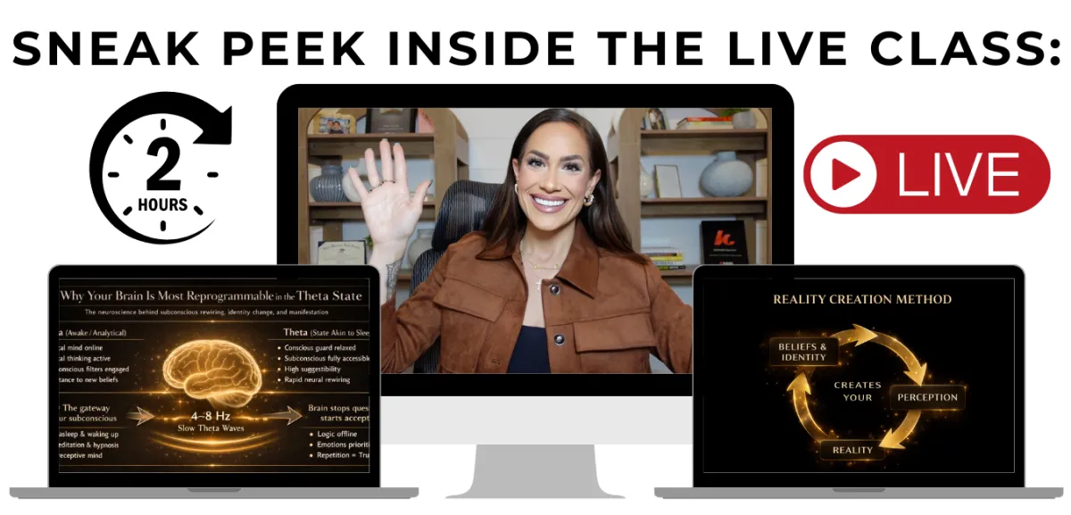 This FREE, live (yes, 100% live) 2 hour masterclass will rewire your brain for the abundance and success you've always deserved. You'll learn a neuroscience backed formula to manifest anything you desire in record time.